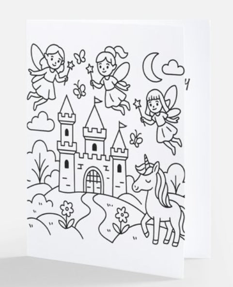 Step into a world of enchantment with Magical Birthday! This card is the perfect canvas for little artists to color and create their own fairytale moment. Ideal for birthdays filled with imagination, sparkle, and a touch of magic! Create. Gift. Cherish.